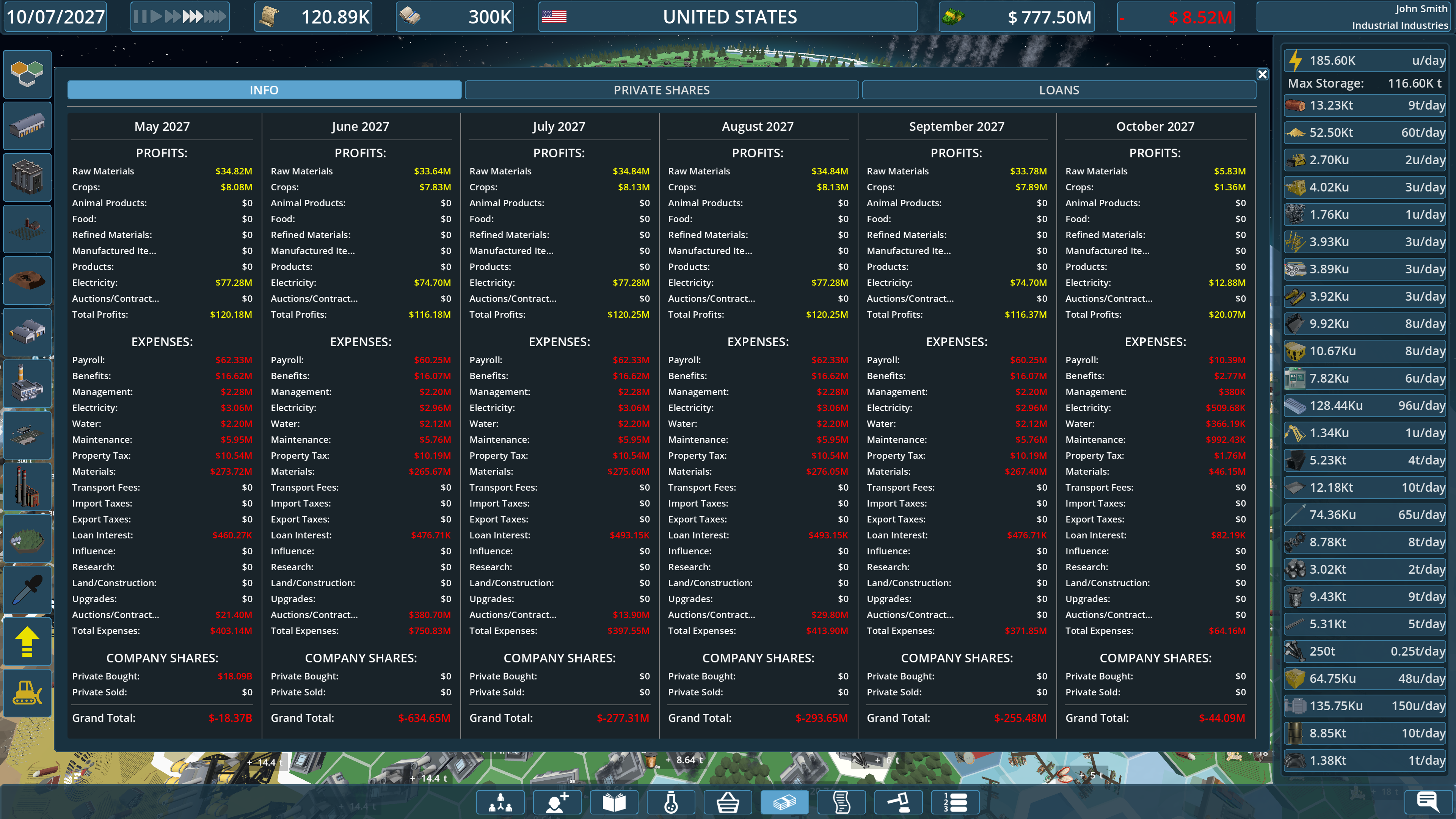 - COMPANY POLICIES: Spend Influence to enact global policies. Will you support "Union Representation" and "Sustainable Architecture" for a reputation boost? Or will you cut costs with "Child Labor," "Smuggling," and "Unfiltered Exhaust"?